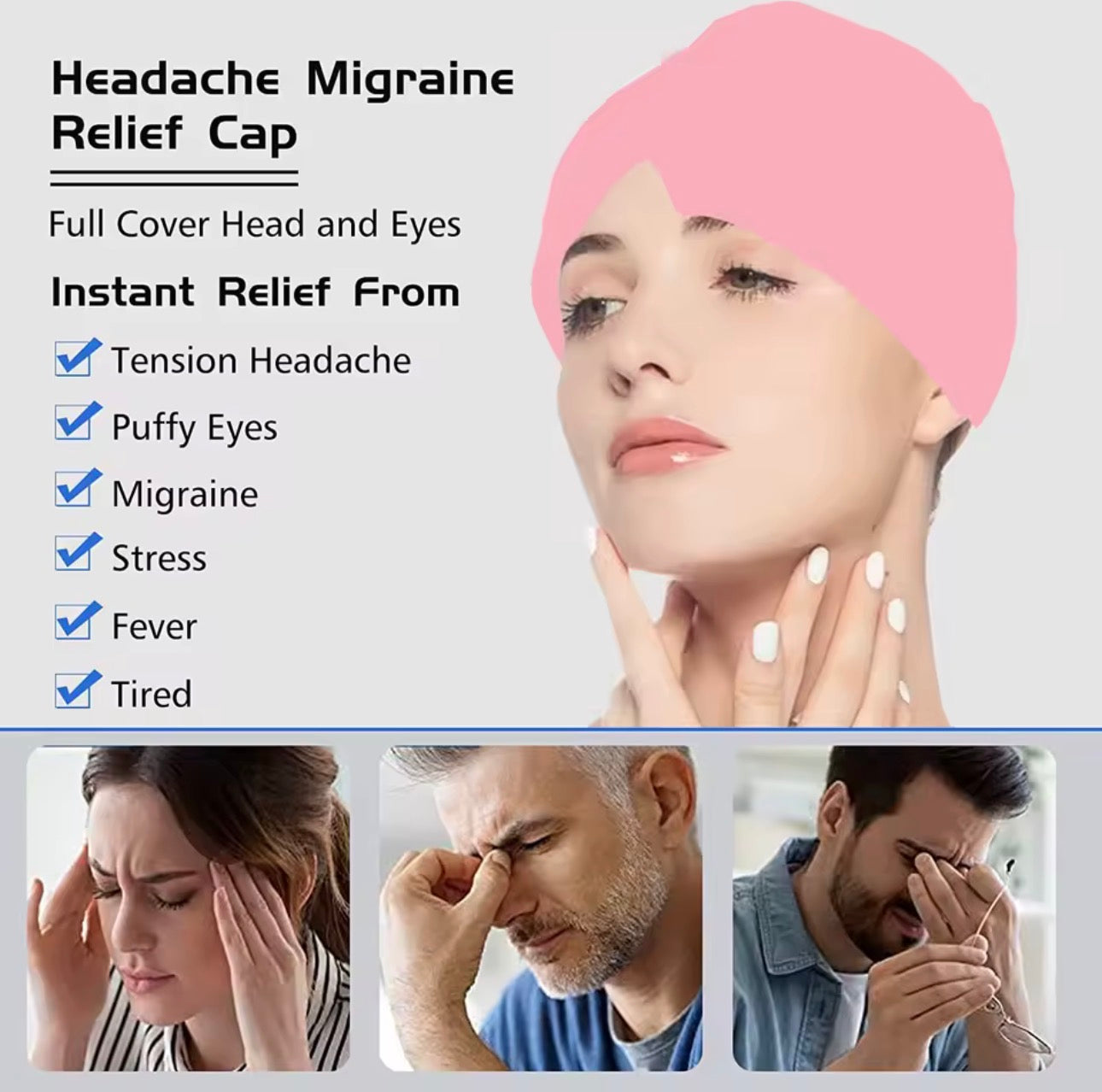 • 🧠 Full Head Coverage: Snug, elastic fit targets all pain points
